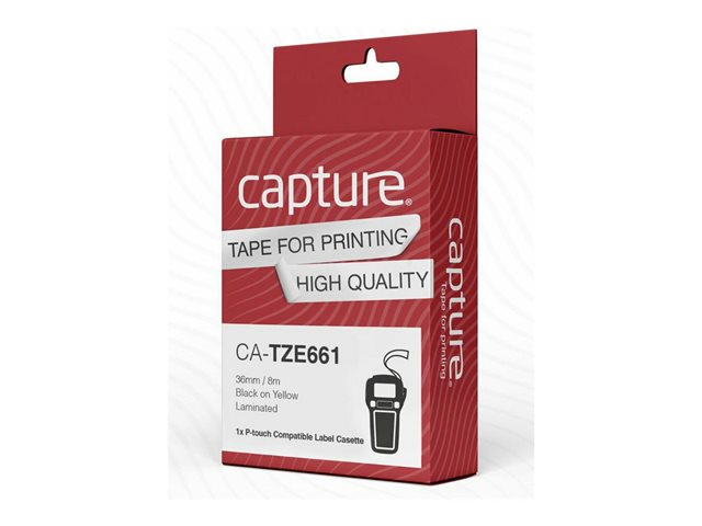 Capture - Nylon - svart på gult - Rulle 3,6 cm x 8 m) 1 kassett(er) hängande låda - bandlaminat (alternativ för: Brother TZE661)