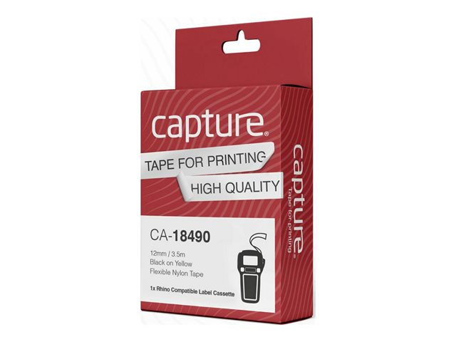 Capture - Nylon - laminerad - svart på gult - Roll (1.2 cm x 3.5 m) 1 kassett(er) hängande låda - flexibel etikettejp (alternativ för: DYMO 18490) - för DYMO Rhino 4200, 5200, 6000; RhinoPRO 5000