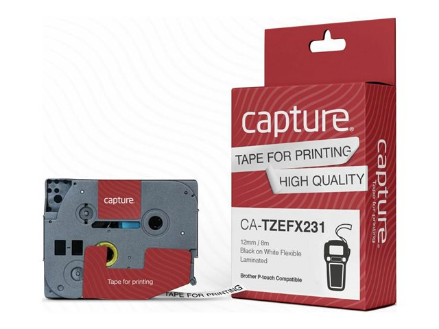 Capture - Nylon - laminerad - svart på vitt - Rulle (1,2 cm x 8 m) 1 kassett(er) hängande låda - flexibel tape (alternativ för: Brother TZEFX231)