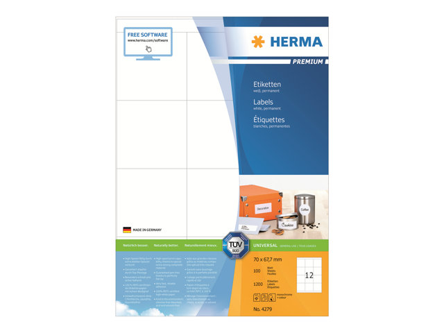 HERMA Premium - Papper - matt - permanent självhäftande - vit - 70 x 67.7 mm 1200 etikett (er) (100 ark x 12 laminerade etiketter