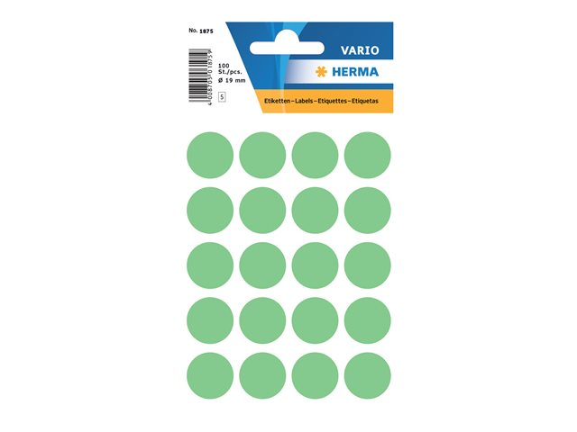 HERMA - Papper - självhäftande - grön - 19 mm, rund 100 etikett (er) (5 ark x 20 etiketter