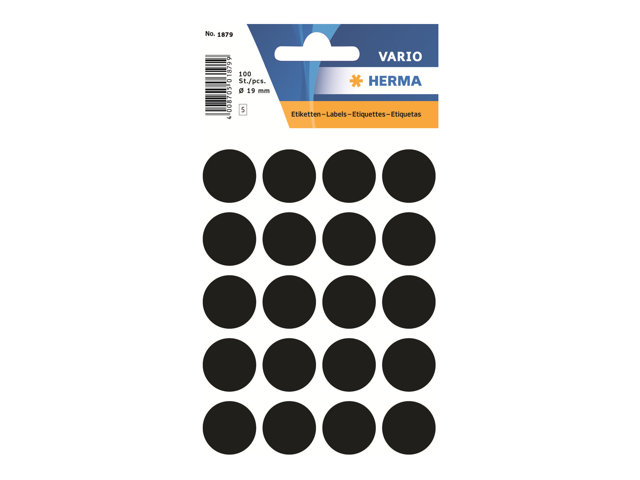 HERMA - Självhäftande - svart - 19 mm, rund 100 etikett (er) etiketter