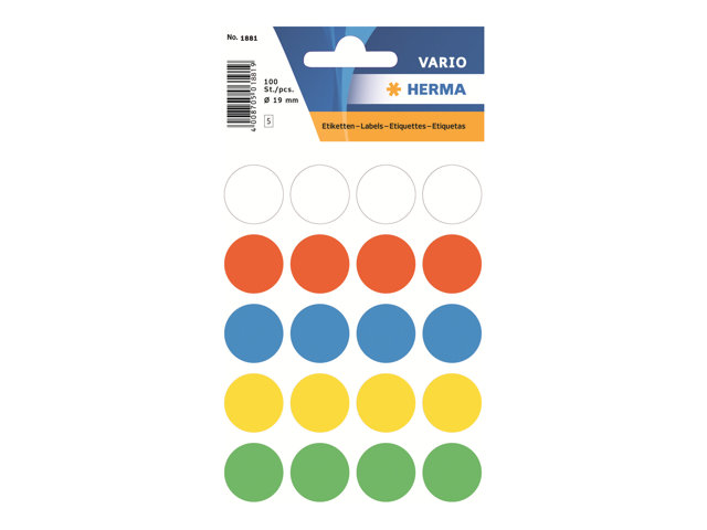HERMA - Papper - självhäftande - blandade färger - 19 mm, rund 100 etikett (er) (5 ark x 20) etiketter