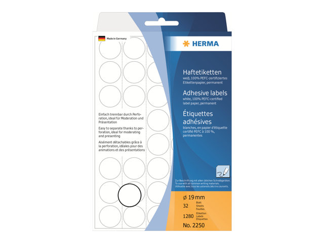 HERMA - Permanent häftning - vit - 19 mm, rund 1280 etikett (er) (32 ark x 40) etiketter