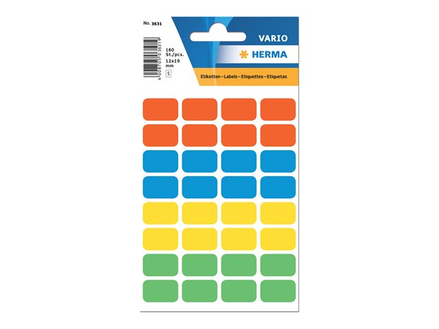 HERMA - Papper - självhäftande - blandade färger - 12 x 19 mm 160 etikett (er) (5 ark x 32) etiketter