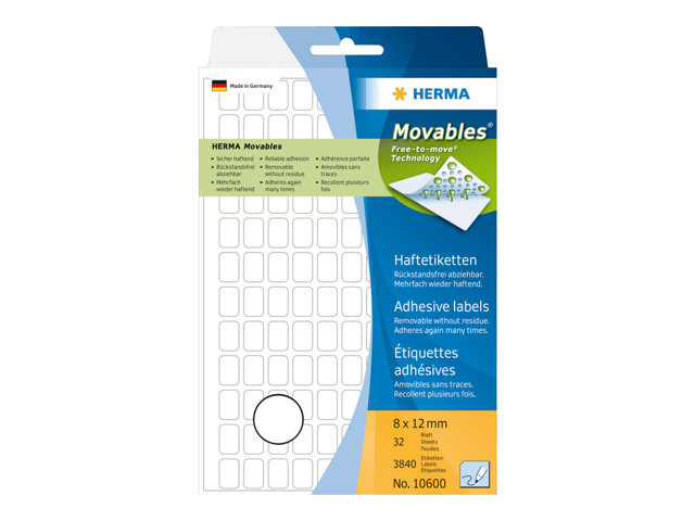 HERMA - Självhäftande - vit - 8 x 12 mm 2880 etikett (er) (24 ark x 120 etiketter