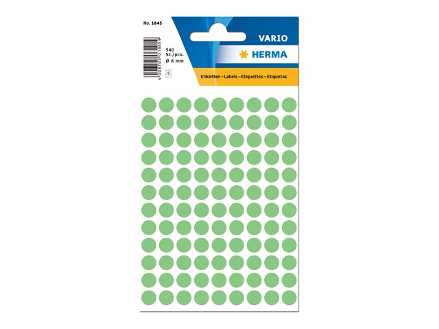 HERMA - Papper - självhäftande - grön - 8 mm rund 540 etikett (er) (5 ark x 108) etiketter