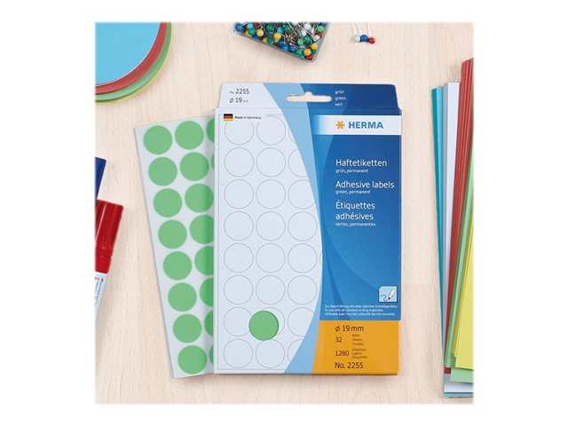 HERMA - Papper - permanent häftning - vit - 13 mm rund 2464 etikett (er) (32 ark x 77 etiketter för flera ändamål
