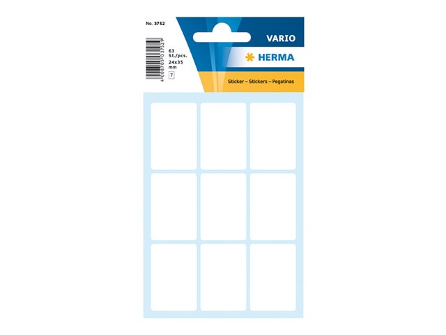 HERMA - Vit - 24 x 35 mm 63 etikett (er) (7 ark x 9) etiketter för flera ändamål