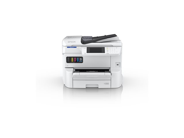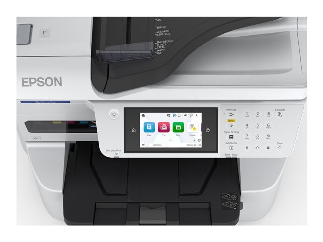 | Produktbeskrivning | Epson WorkForce Pro EM-C7100DWF - Multifunktionsskrivare - färg - bläckstråle - A3 (297 x 420 mm) (original) - A3 (media) - upp till 22 sidor/minut (kopiering) - upp till 25 sidor/minut (utskrift) - 335 ark - 33.6 Kbps - Gigabit LAN, Wi-Fi(ac), USB 3.0, USB 2.0, USB-värd |