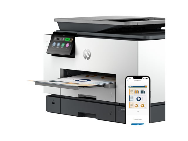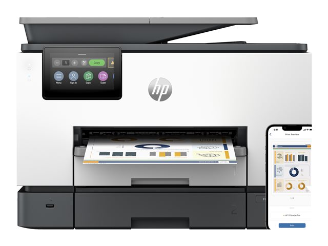 | Produktbeskrivning | HP Officejet Pro 9130b All-in-One - Multifunktionsskrivare - färg - bläckstråle - Legal (216 x 356 mm) (original) - A4/Legal (media) - upp till 23 sidor/minut (kopiering) - upp till 25 sidor/minut (utskrift) - 250 ark - 33.6 Kbps - USB 2.0, LAN, USB-värd, Wi-Fi(ac) |