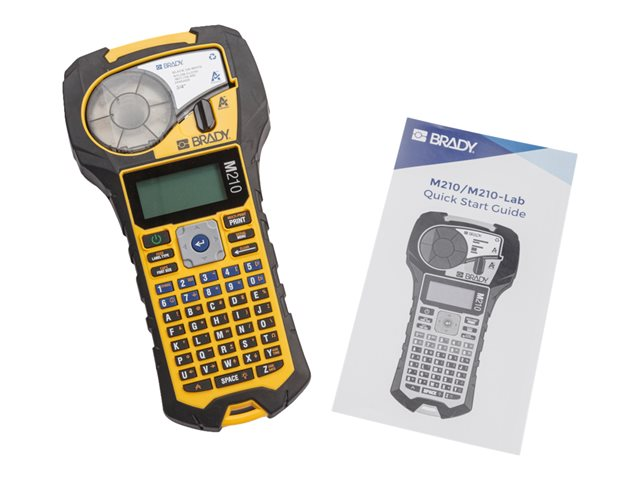| Produktbeskrivning | Brady M210 - Kit - etikettskrivare - svartvit - termisk överföring - Rulle (1,91 cm) - 203 dpi - upp till 10 mm/sek - grå, gul |