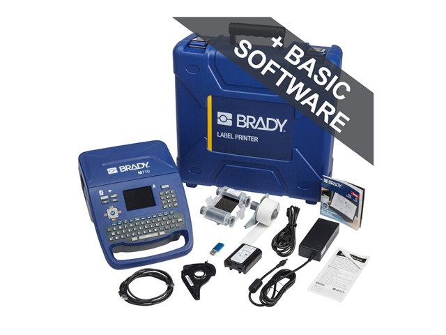 | Produktbeskrivning | Brady M710 - Etikettskrivare - svartvit - termisk överföring - Rulle (5,08 cm) - 300 dpi - upp till 76.2 mm/sek - USB 2.0, Bluetooth, Wi-Fi, USB-C - kniv - blå |