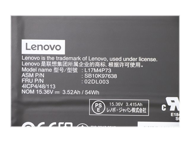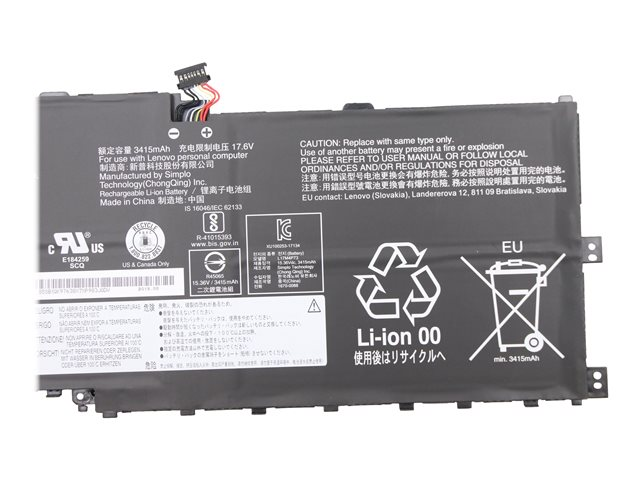 | Produktbeskrivning | Simplo - Batteri för bärbar dator - litiumjon - 4-cells - 3520 mAh - 54 Wh - FRU - för ThinkPad X1 Yoga (3rd Gen) 20LD, 20LE, 20LF, 20LG |