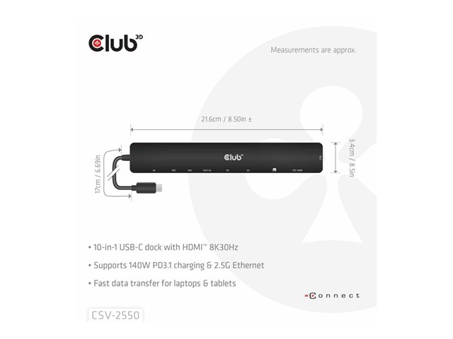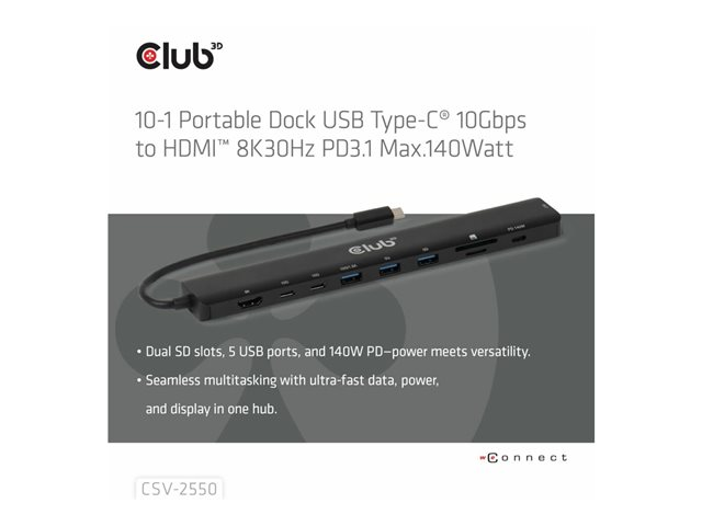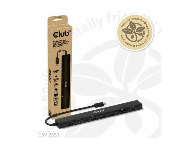 Club 3D 10-in-1 - Dockningsstation - för bordsdator, laptop - USB-C / Thunderbolt - HDMI - 2.5GbE