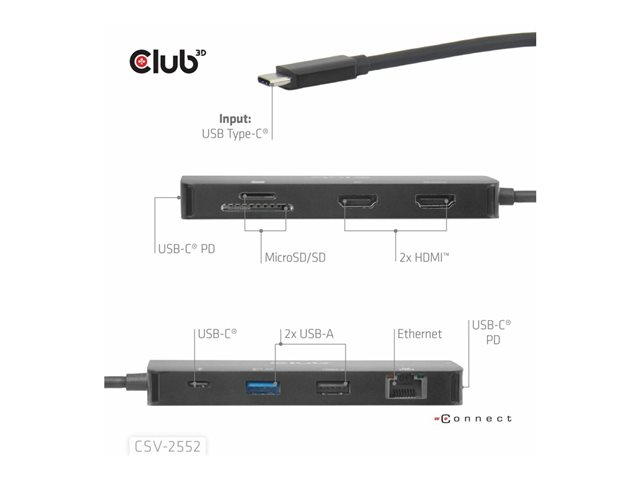 Club 3D - Dockningsstation - för bordsdator, laptop - USB-C - HDMI - 1GbE