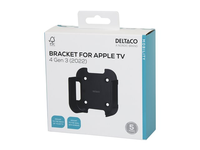 | Produktbeskrivning | DELTACO - Fäste - för digital AV-spelare - polykarbonat - svart - monterbar på ytor, bordsfäste, väggmonterbar - för Apple TV 4K (Wi-Fi + Ethernet) (3:e generationen), 4K (Wi-Fi) (3:e generationen) |