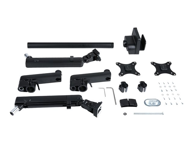 Monteringskomponenter | 2 skärmarmar, 2 VESA-plattor, stång, bas, 2 skärmarmsfästen, verktygshållare |
