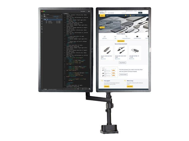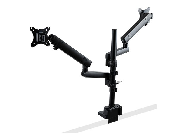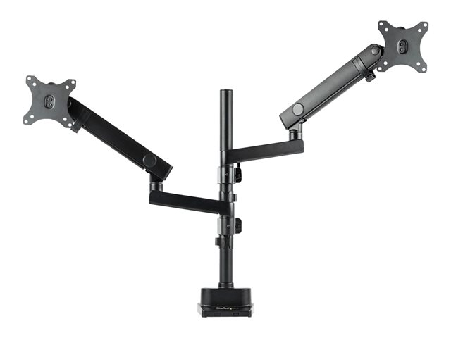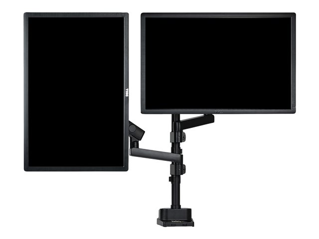 Produktbeskrivning | StarTech.com Desk Mount Dual Monitor Arm, Full Motion Monitor Mount for 2x VESA Displays up to 32" (up to 17lb/8kg), Ergonomic Vertical Stackable Arms, Articulating, Height Adjustable - Pole Mount, C-Clamp/Grommet (ARMDUALPIVOT) - Monteringssats (2 skärmarmar, 2 VESA-plattor, stång, bas, 2 skärmarmsfästen, verktygshållare) - dubbel arm med fulla rörelser - för 2 monitorer - aluminium - svart - skärmstorlek: 32" - disk-monteringsbar |