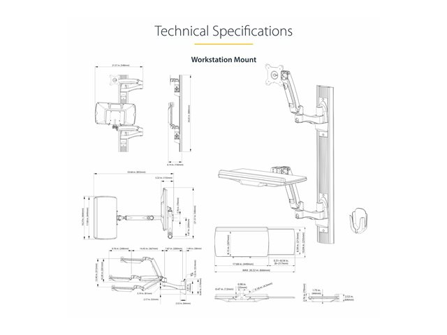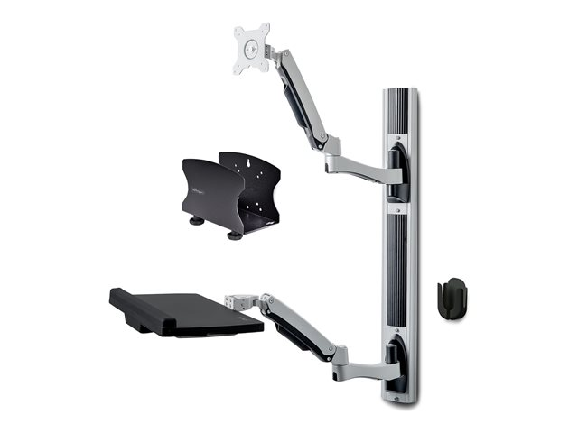 | Förpackningens innehåll | 2 x fjäderarm, 2 x vridbar arm, 2 mounting plates (spring arm), 2 upper decorative covers, 2 lower decorative covers, 2 swivel arm mounts, 2 spring arm posts, wall mounting rail (track), wall mounting rail (track cover), tangentbordsfack, mushållare, vidhäftande platta, 2 adhesive hook and loop strips, mounting bracket, sliding bracket, 2 rubber self-adhesive strips, 10 wall mounting screws, 2 plastic spacers, 8 rubber self-adhesive spacers, 4 rubber self-adhesive pads, 14 concrete anchors, 2 hand knobs, 2 hex keys (2.5mm), 2 hex keys (5mm), 4 x M4x10-skruvar, 4 st. M6x8 sexkantsskruvar, 2 x M4x6-skruvar, 8 st. M6x8-skruvar, 4 st. skruvar (M6 x 18 mm), 6 x M5x4 screws, 6 wall mounting lag screws, skiftnyckel (10 mm) |