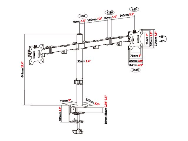 | VESA-infästningsgränssnitt | 100 x 100 mm, 75 x 75 mm |