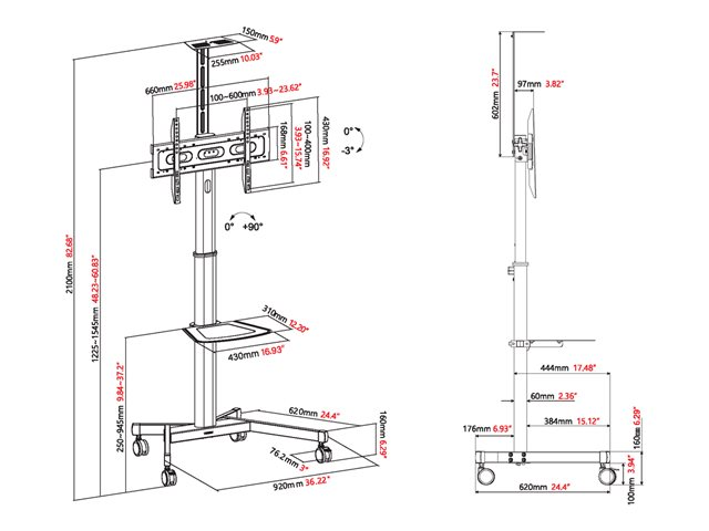 | VESA-infästningsgränssnitt | 200 x 200 mm, 200 x 400 mm, 300 x 300 mm, 300 x 400 mm, 350 x 350 mm, 400 x 200 mm, 400 x 300 mm, 400 x 400 mm, 600 x 400 mm |