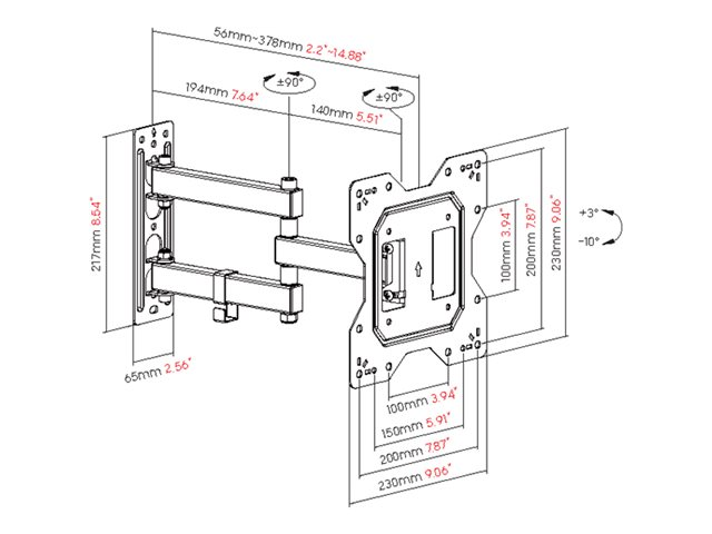 | Monteringskomponenter | Väggplatta, VSA-adapter, vridbar arm |
