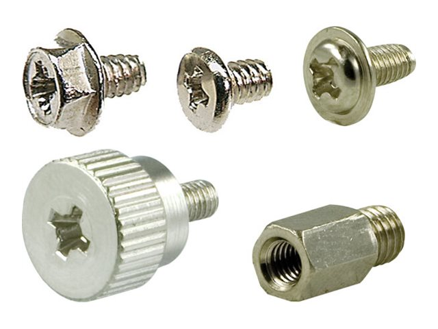 10 skruvar till diskett- och CD/DVD-enheter, 10 mellanbrickor till moderkort, 10 tumskruvar till systemskåp, 10 skruvar till systemskåp, 10 skruvar till HDD