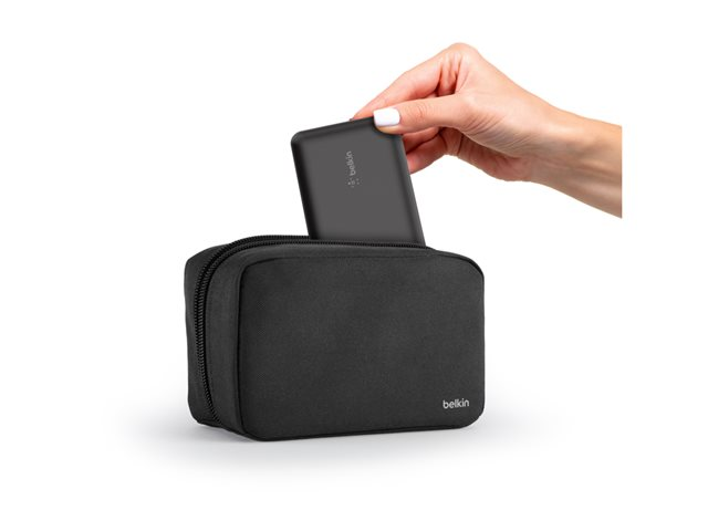 Belkin BoostCharge - Power bank + växelströmsadapter - 10000 mAh - 3 utdatakontakter (USB-C, 2 x USB) - på kabel: USB-C - med fickfodral med dragkedja