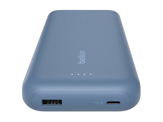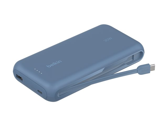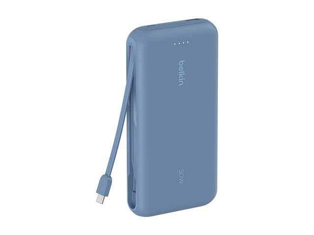 Belkin BoostCharge - Power bank - med integrerad kabel - 20000 mAh - 30 Watt - PD - 3 utdatakontakter (2 x USB-C, USB) - blå