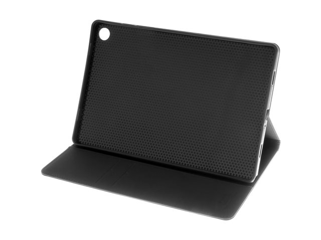 Insmat Exclusive - Vikbart fodral för surfplatta - handgjort läder, kartong+papper, bomullssömmar - svart - för Samsung Galaxy Tab S10 Lite