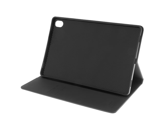 Insmat Exclusive - Vikbart fodral för surfplatta - läder, kartong+papper, bomullssömmar - svart - för Samsung Galaxy Tab S11