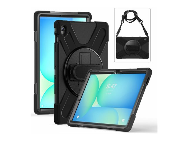 eSTUFF AUSTIN - Baksidesskydd för surfplatta - robust - utan inbyggt skärmskydd - polykarbonat, silikon - svart - med skärmskyddare - för Samsung Galaxy Tab S10 FE+
