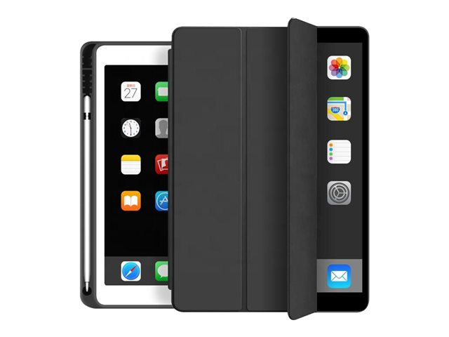 | Produktbeskrivning | eSTUFF Pencil case - Skärmskydd för surfplatta - polyuretanläder, termoplastisk polyuretan (TPU) - svart - 9.7" - för Apple 9.7-inch iPad (5:e generation, 6:e generation) |