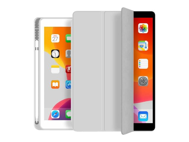 | Produktbeskrivning | eSTUFF Pencil case - Skärmskydd för surfplatta - polyuretanläder, termoplastisk polyuretan (TPU) - grå - 9.7" - för Apple 9.7-inch iPad (5:e generation, 6:e generation) |