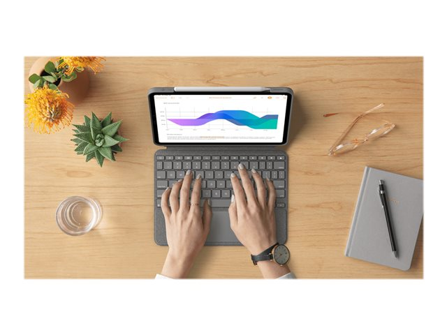 | Produktbeskrivning | Logitech Combo Touch - Tangentbord och foliefodral - med pekdyna - bakgrundsbelyst - Apple Smart connector - QWERTY - spansk - oxford-grå - för Apple 11-inch iPad Pro (1:a generation, 2a generation, 3:e generationen) |