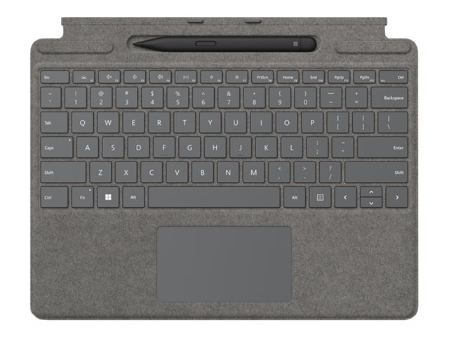 | Produktbeskrivning | Microsoft Surface Pro Signature Keyboard for Business - Tangentbord - med pekplatta, accelerometer, Förvarings- och laddningsfack för Surface Slim Pen 2 - QWERTY - portugisisk - platina - med Slim Pen 2 - för Surface Pro 8, Pro 9, Pro X |