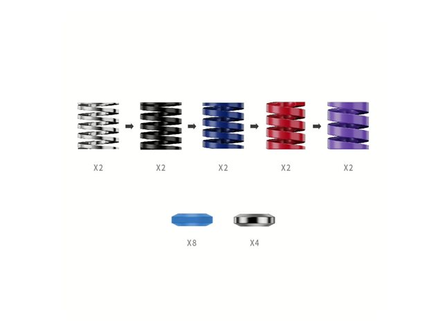 Förpacknings innehåll | 10 springs, 8 dampers, 4 alumimum blocks |