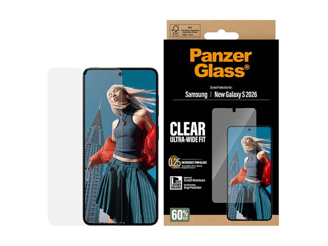 PanzerGlass - Skärmskydd för mobiltelefon - ultrabred passning med EasyAligner - glas - klar - för Samsung Galaxy S26