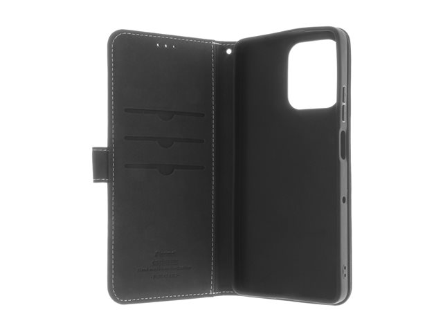 | Produktbeskrivning | Insmat Exclusive - Vikbart fodral för mobiltelefon - genuint läder, kartong+papper+aluminiumfolie, termoplastisk polyuretan (TPU), polyuretan, bomullssömmar - för Motorola Moto G67, G77 |