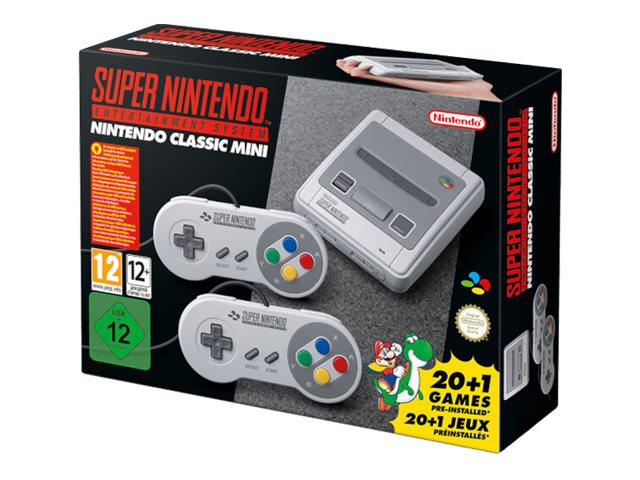| Inkluderade spel | Contra III The Alien Wars, FINAL FANTASY III, Donkey Kong Country, F-ZERO, EarthBound, Kirby Super Star, Kirby's Dream Course, The Legend of Zelda: A Link to the Past, Mega Man X, SECRET of MANA, Star Fox, Star Fox 2, Street Fighter II Turbo: Hyper Fighting, Super Castlevania IV, Super Ghouls'n Ghosts, Super Mario Kart, Super Mario RPG: Legend of the Seven Stars, Super Mario World, Super Mario World 2: Yoshi's Island, Super Metroid, Super Punch-Out!! |