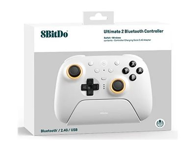Produktbeskrivning | 8Bitdo Ultimate 2 - Spelkontroll - trådlös - 2.4 GHz/Bluetooth - vit - för Nintendo Switch, Nintendo Switch 2 |