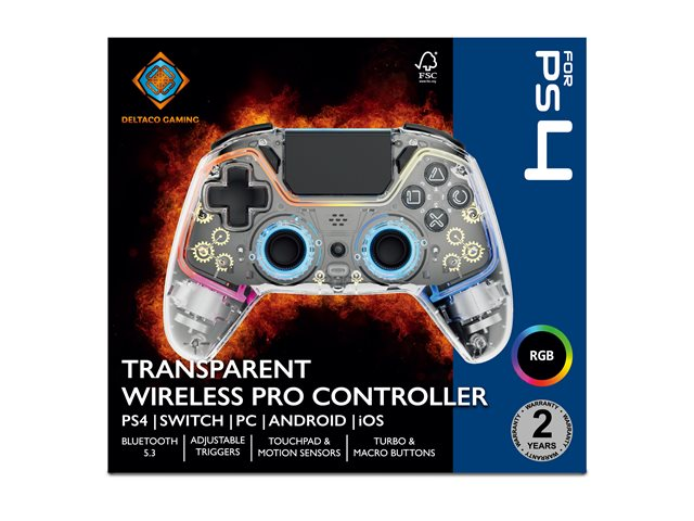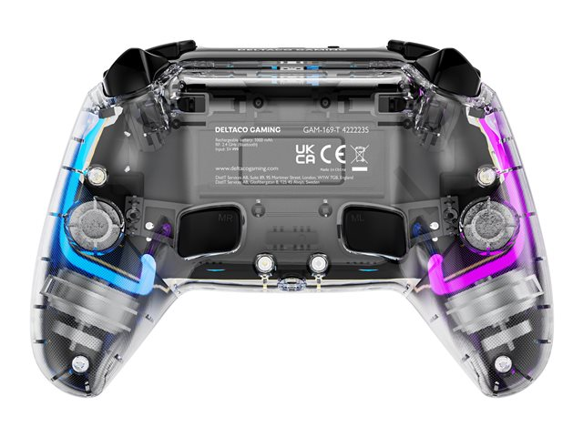 | Produktbeskrivning | DELTACO GAMING GAM-169-T - Spelkontroll - trådlös - 2.4 GHz/Bluetooth - transparent - för PC, PlayStation, Nintendo Switch, Android, iOS |