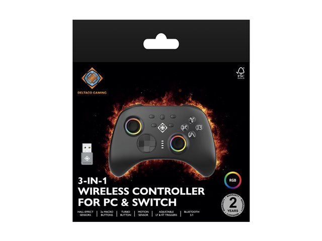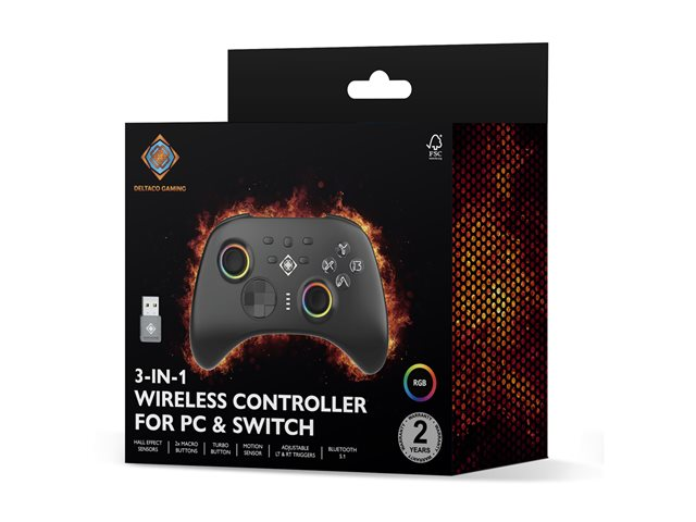 | Produktbeskrivning | DELTACO GAMING GAM-184 - Spelkontroll - trådlös - 2.4 GHz/Bluetooth - för Android, PC, Nintendo Switch, iOS, Tesla |