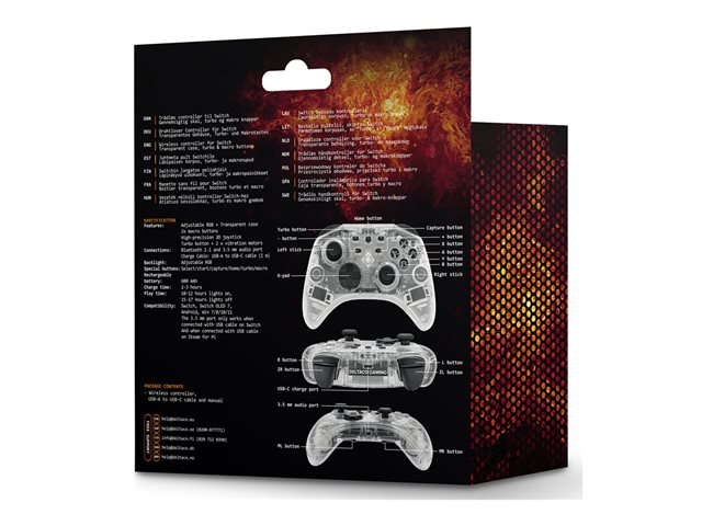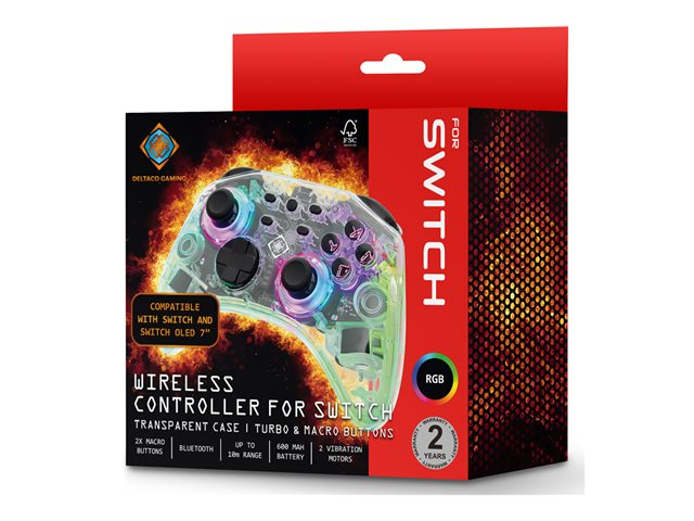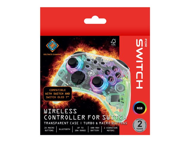 | Produktbeskrivning | DELTACO GAMING - Spelkontroll - trådlös - Bluetooth - transparent - för Nintendo Switch, Nintendo Switch OLED, PC, Android, iOS |